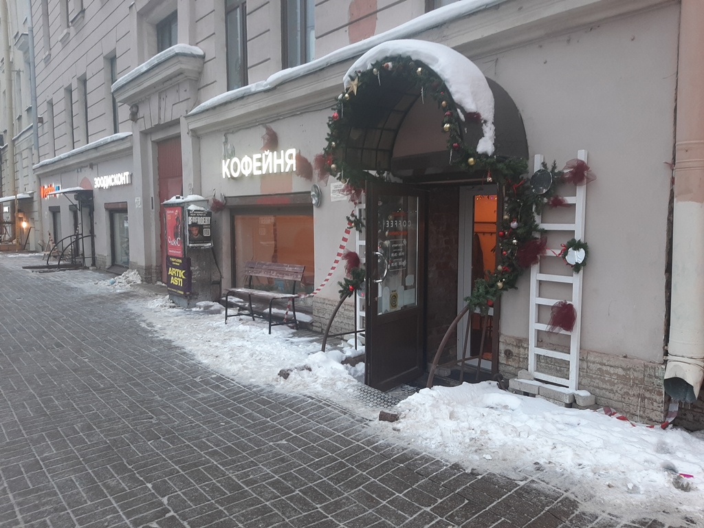 | Московский пр., 21 | | Закрытое кафе ООО "Логистик-Девелопмент", ИНН-7805669090 (1/21Д) (30.09.21) | | Здесь находится университет "Военмех". Наличие в нём столовой и её работа не проверялась. В одном здании со стороны Московского проспекта есть помещения кафе/столовой, давно закрытые. Есть второе, действующее, кафе (ООО "Кореана Лайт") (06.12.25) | | Поменяли входную дверь закрытого кафе/столовой (07.01.26) | (Фото) |
