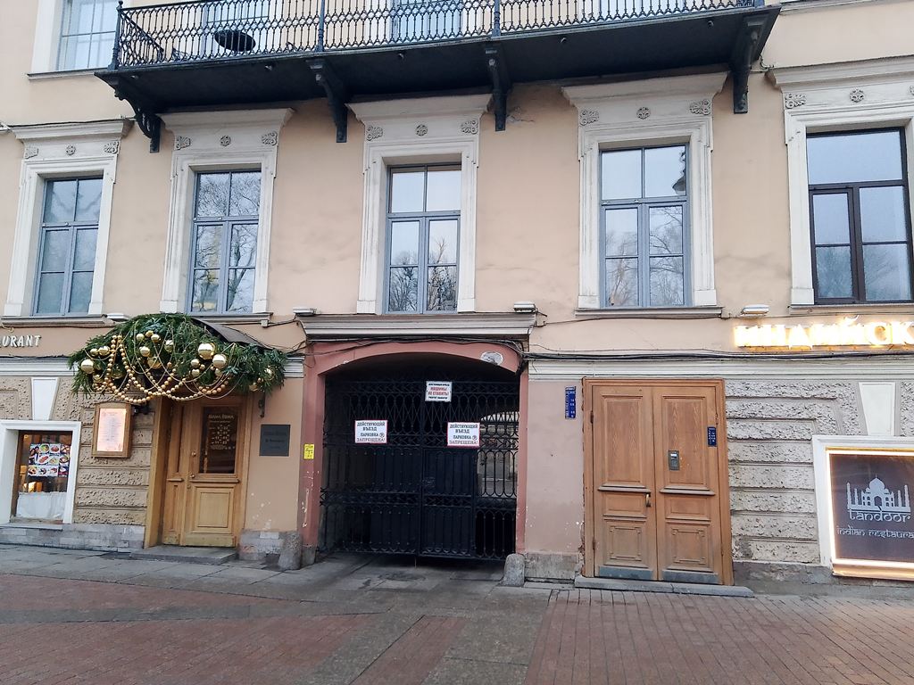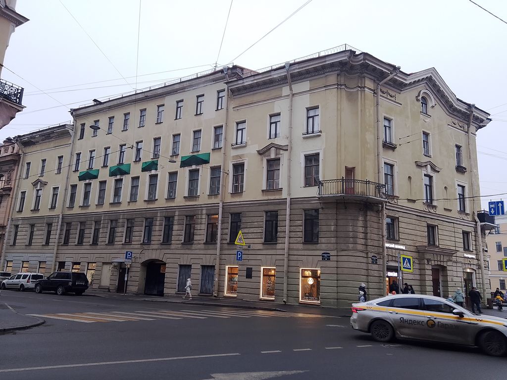 | Вознесенский пр., 21 (бывш. пр. Майорова, 21) | | Жилой дом с разными магазинами, организациями и учреждениями на 1 этаже. Предприятий общественного и/или социального питания нет (06.10.25) | (Фото) |