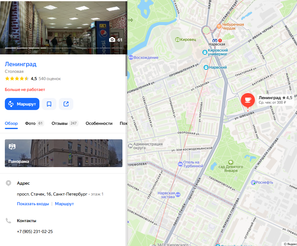 пр. Стачек, 16 - Столовая "Ленинград" |