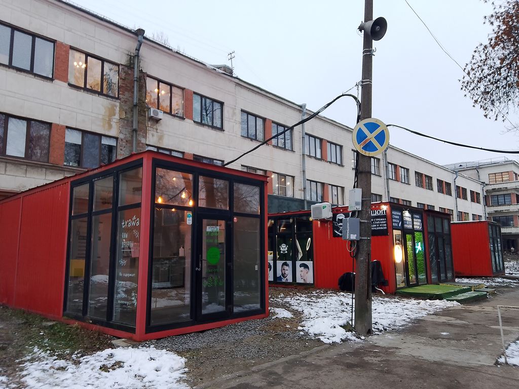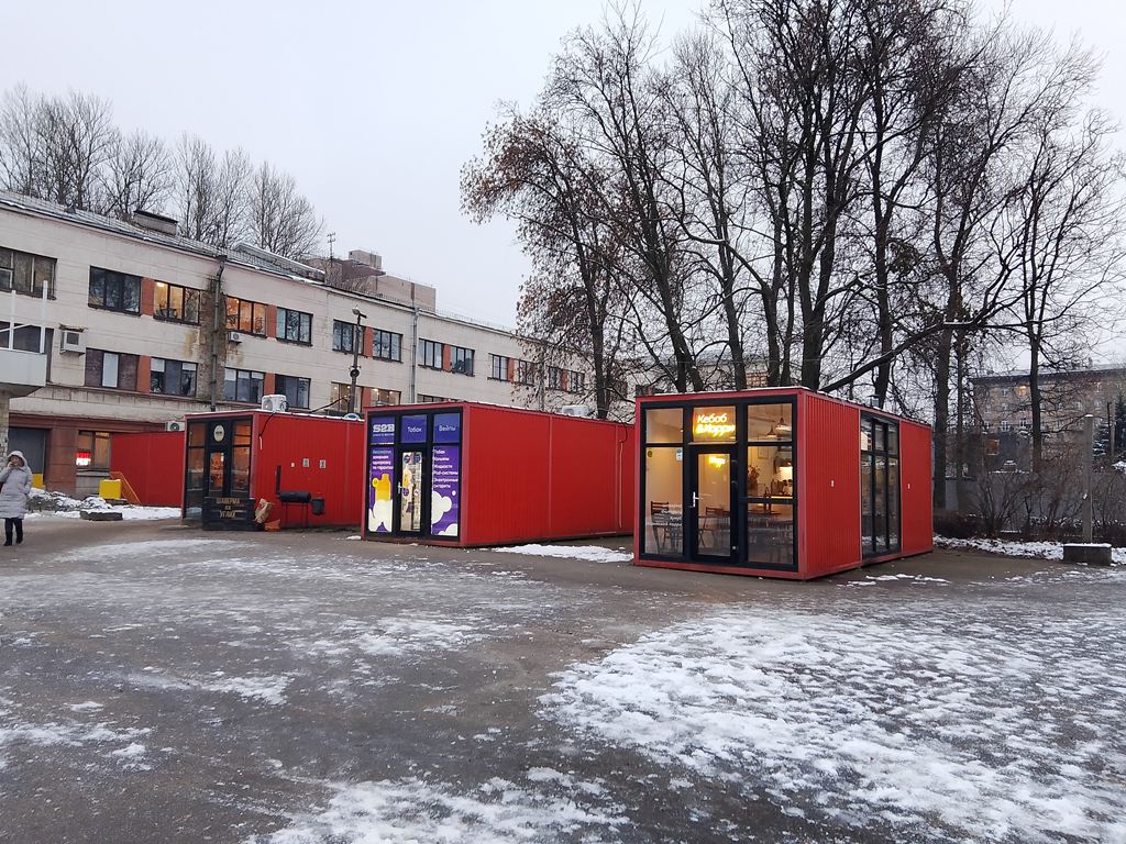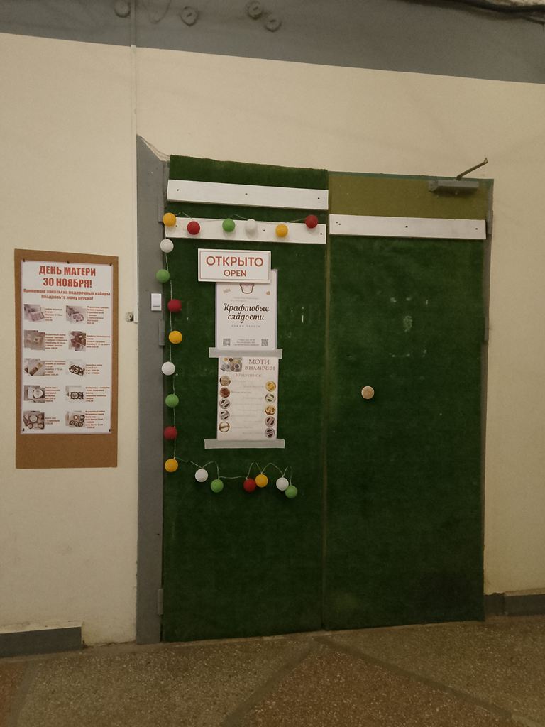 | 27.11.25. Новые ларьки перед зданием дворца культуры | 27.11.25. Вид справа | 27.11.25. Дверь магазина "Крафтовые сладости" на 1 этаже | 27.11.25. Вывеска магазина "Крафтовые сладости" на 1 этаже | 27.11.25. Дверь кафе на 2 этаже |
