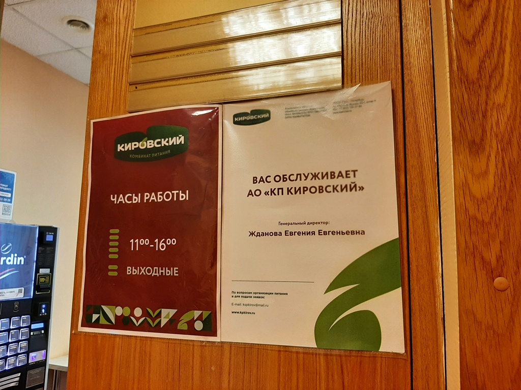 | 25.10.12. Внутри кафе. Фото с официального сайта комбината | 24.10.20. Вход в столовую | 24.10.20. Вывеска у двери столовой | 24.10.20. Меню в столовой | 24.10.20. Здесь раньше был пивной ларек |